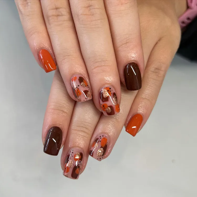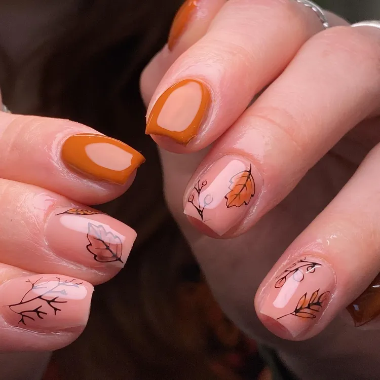 These 51 autumn nail ideas feature pumpkin spice palettes, leafy designs, earthy neutrals, and elegant gold accents.