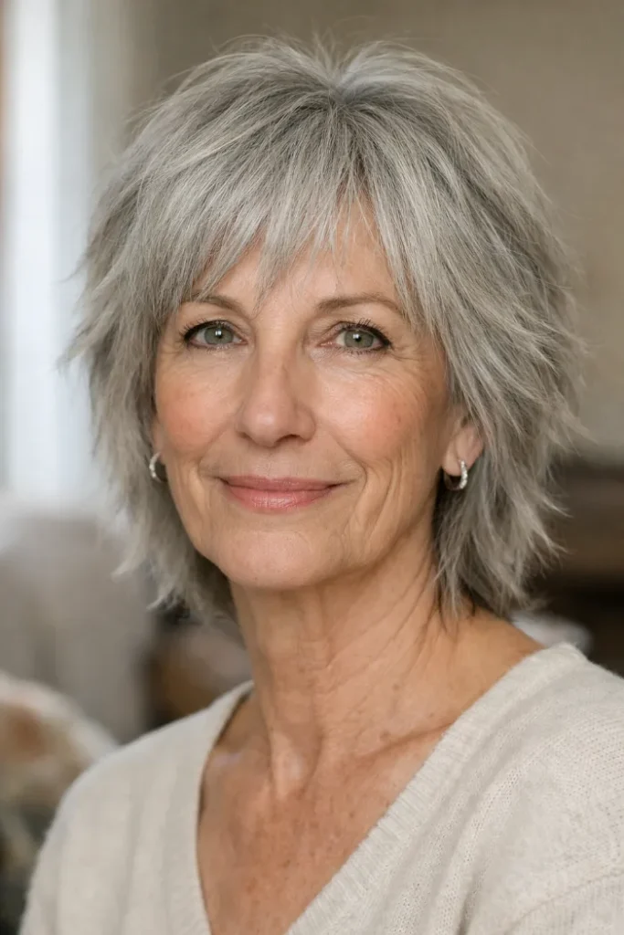 Gray hair gives you plenty to work with, especially when the cut has the right shape. A soft bob, textured pixie, layered lob, or short shag can make gray hair look brighter, fuller, and easier to wear day to day.