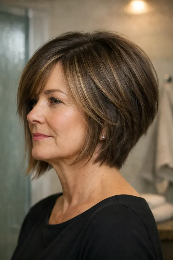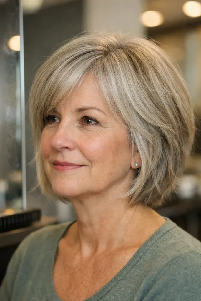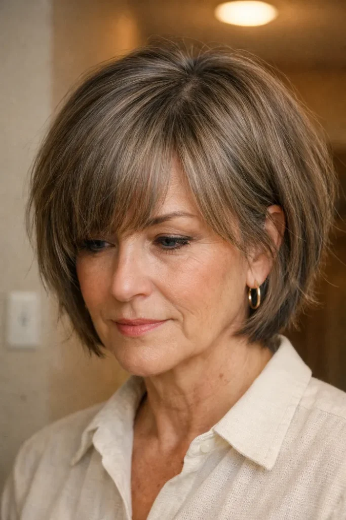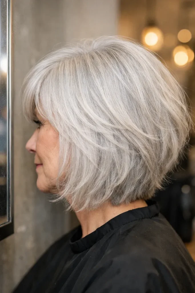 These 20 layered bob ideas are picked for older women who want more shape, more movement, and a cut that still looks good on regular days. Not just right after the salon. You’ll see options with soft face-framing, crown lift, gentle stacking, and ends that look fuller instead of wispy.