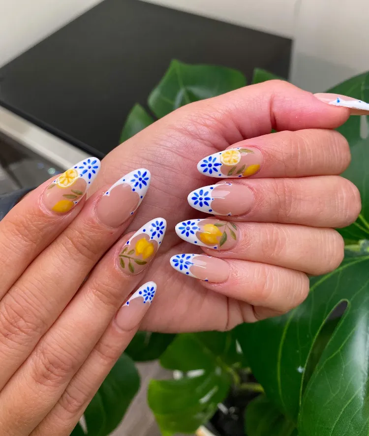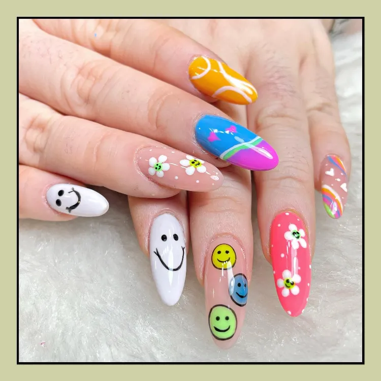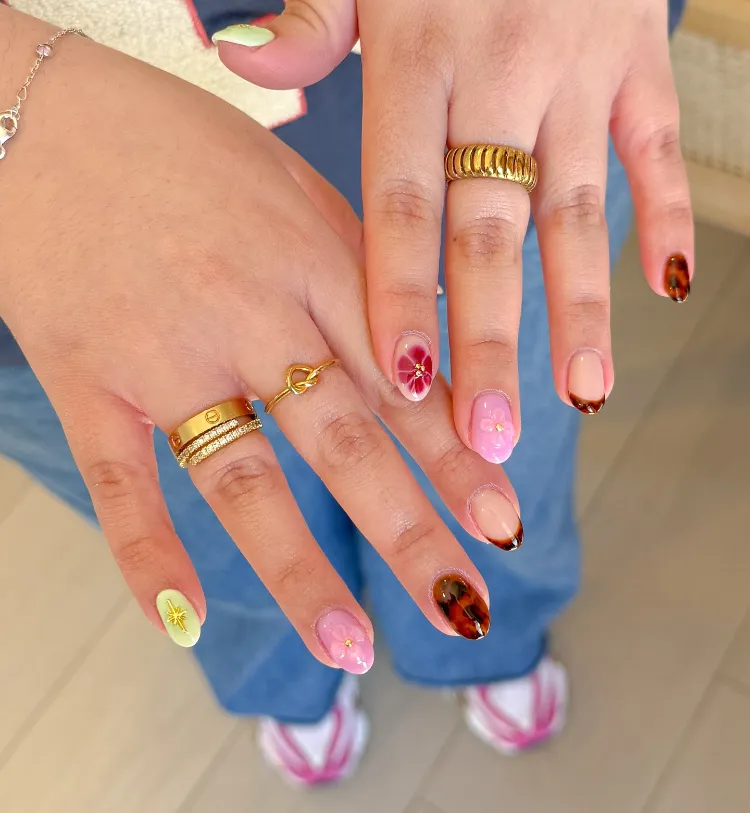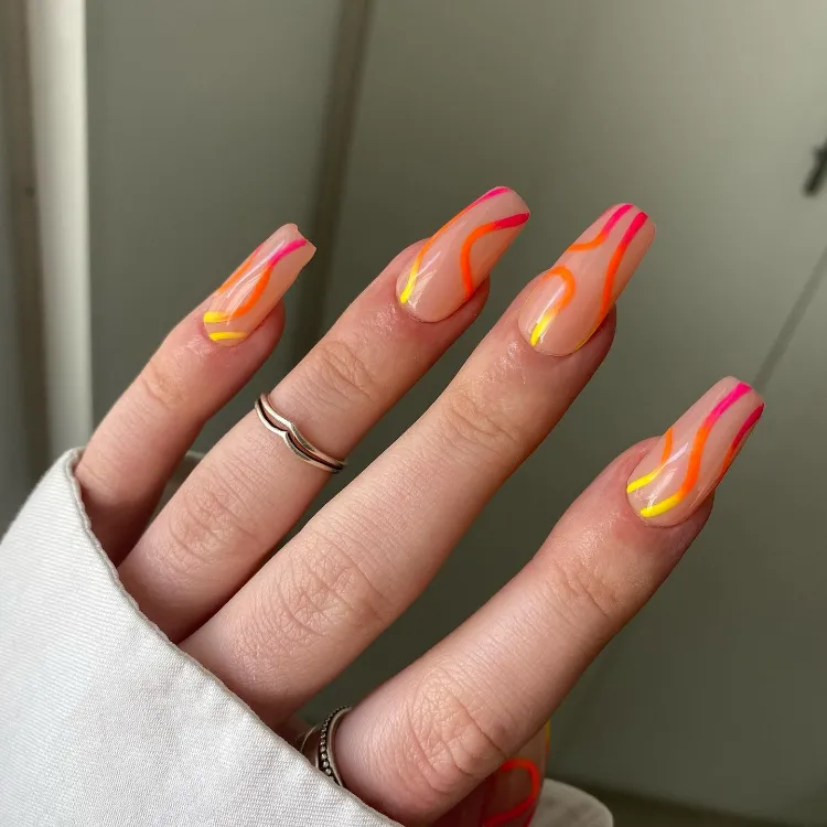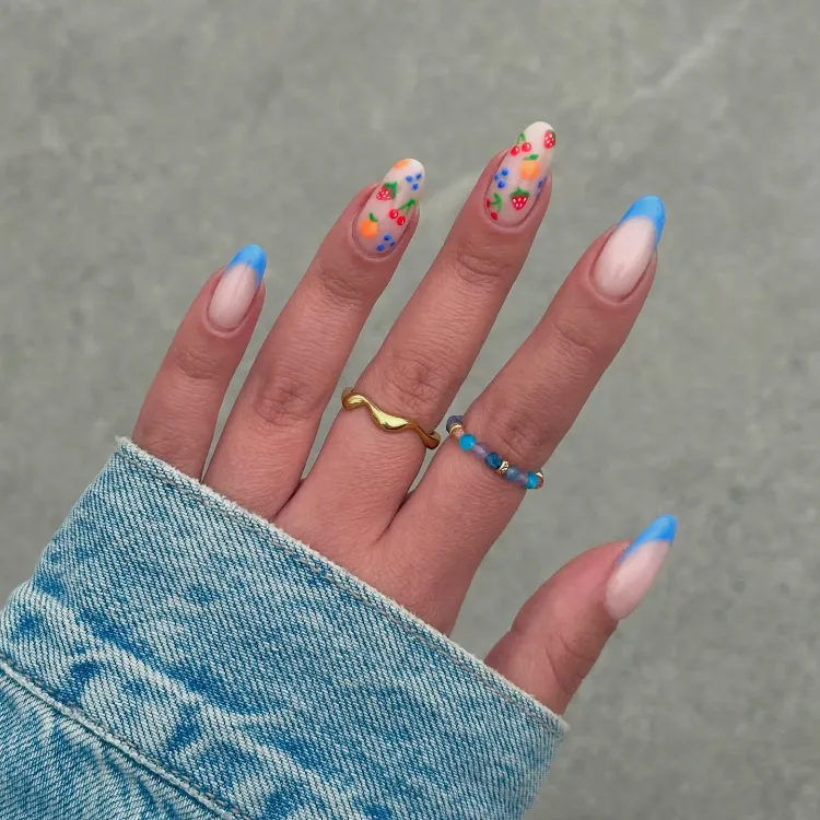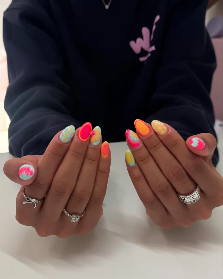 Featuring neon colors, fruity designs, tropical patterns, and beachy vibes, these nails will have you feeling like you’re on vacation — even if you’re just hanging out at home.