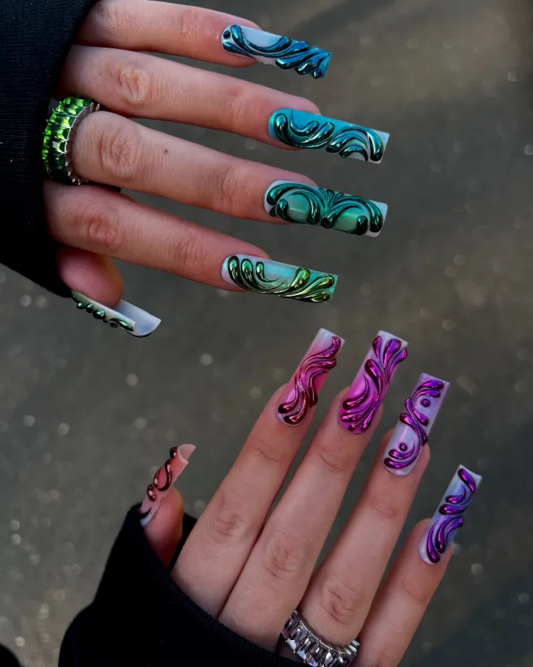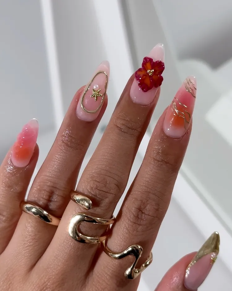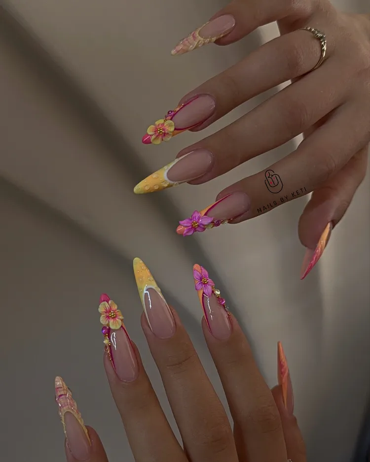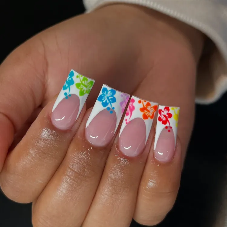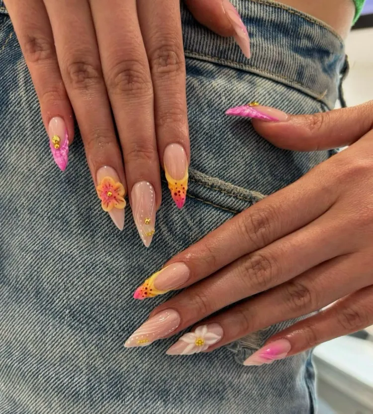 Featuring neon colors, fruity designs, tropical patterns, and beachy vibes, these nails will have you feeling like you’re on vacation — even if you’re just hanging out at home.